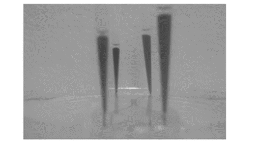 为了使体积更加可观,实验中分别 采用红、蓝染料加入 PBS 中 ,平衡 2.5 h 后,形成较稳定的压力差。将两边通道液面的高度差控制在 10 mm,根据压强公式 p = ρgh 可求出中间通道的压力差为 100 Pa。