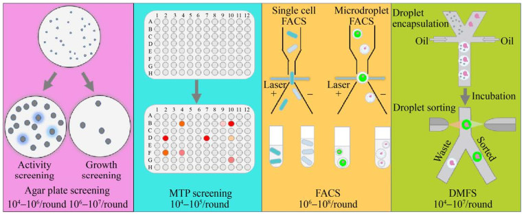 为解决这些问题,近年来开发了荧光激活细胞分选 (FACS) 和液滴微流控分选 (DMFS) 等超高通量筛选方法。