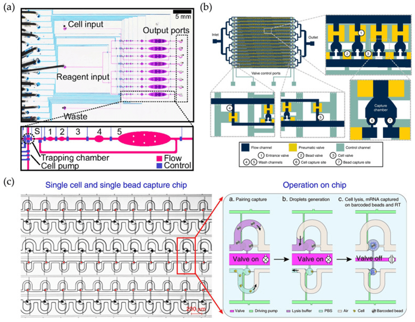 基于阀门的微流控芯片通过调节压力控制弹性PDMS膜阀门的开合,实现对单细胞的精准分离、捕获与处理,具备高灵敏度、高通量和低污染等优势。