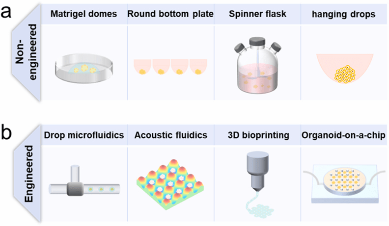 传统类器官培养方法(如Matrigel穹顶培养、悬滴培养等)存在操作繁琐、批次差异大的局限性。