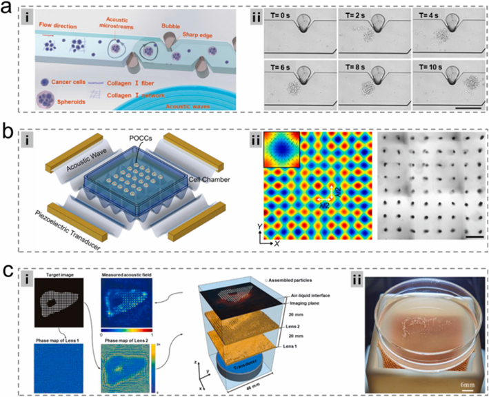 通过胶原蛋白辅助或压电换能器阵列,可在秒级形成稳定细胞聚集体,并成功应用于乳腺肿瘤和肝类器官构建。