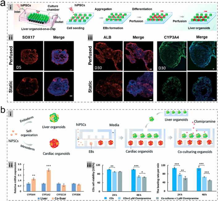 例如,将hiPSC来源的肝前体细胞与支持细胞封装在可降解肽基水凝胶中,可自组装形成具有胆管和血管网络的复杂肝类器官。