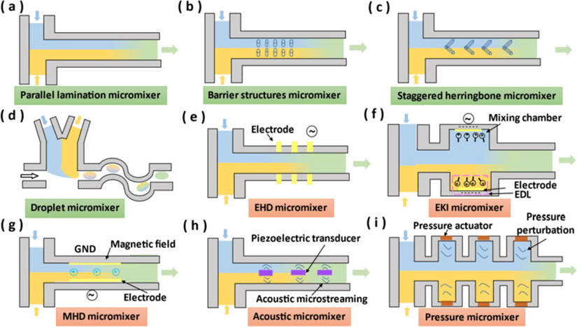 混合主要依赖于分子扩散和混沌平流。微混合器可分为被动微混合器和主动微混合器。