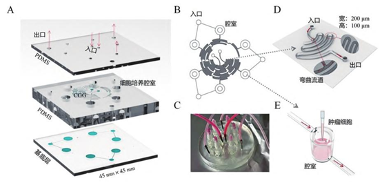 双入口 + 三出口:入口 1 输入药物(如紫杉醇、顺铂),入口 2 输入培养基,出口收集废液,形成闭合循环。