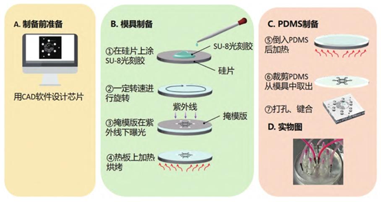 SU-8 光刻胶模具:3 层旋涂(2000rpm×30s),热板烘烤(65℃→95℃),紫外曝光 20s,显影后翻模键合,流道厚度精确控制 100μm。