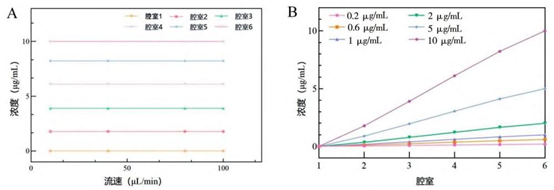流速鲁棒性:10-100μL/min 范围内,浓度梯度仅受初始浓度影响(R²>0.99),与流速无关。100μL/min 为临界值,超此流速入口压力过大导致空腔。