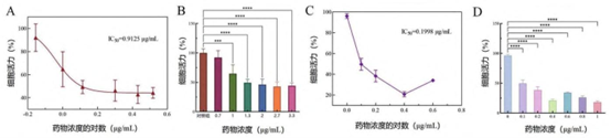 剂量依赖性毒性:紫杉醇 2.7μg/mL 时细胞活力降至 57.8%,顺铂 0.7μg/mL 时凋亡率 72.9%。